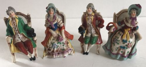 Cute Set of 4 Dresden Porcelain Figurines Sitting on Chairs
