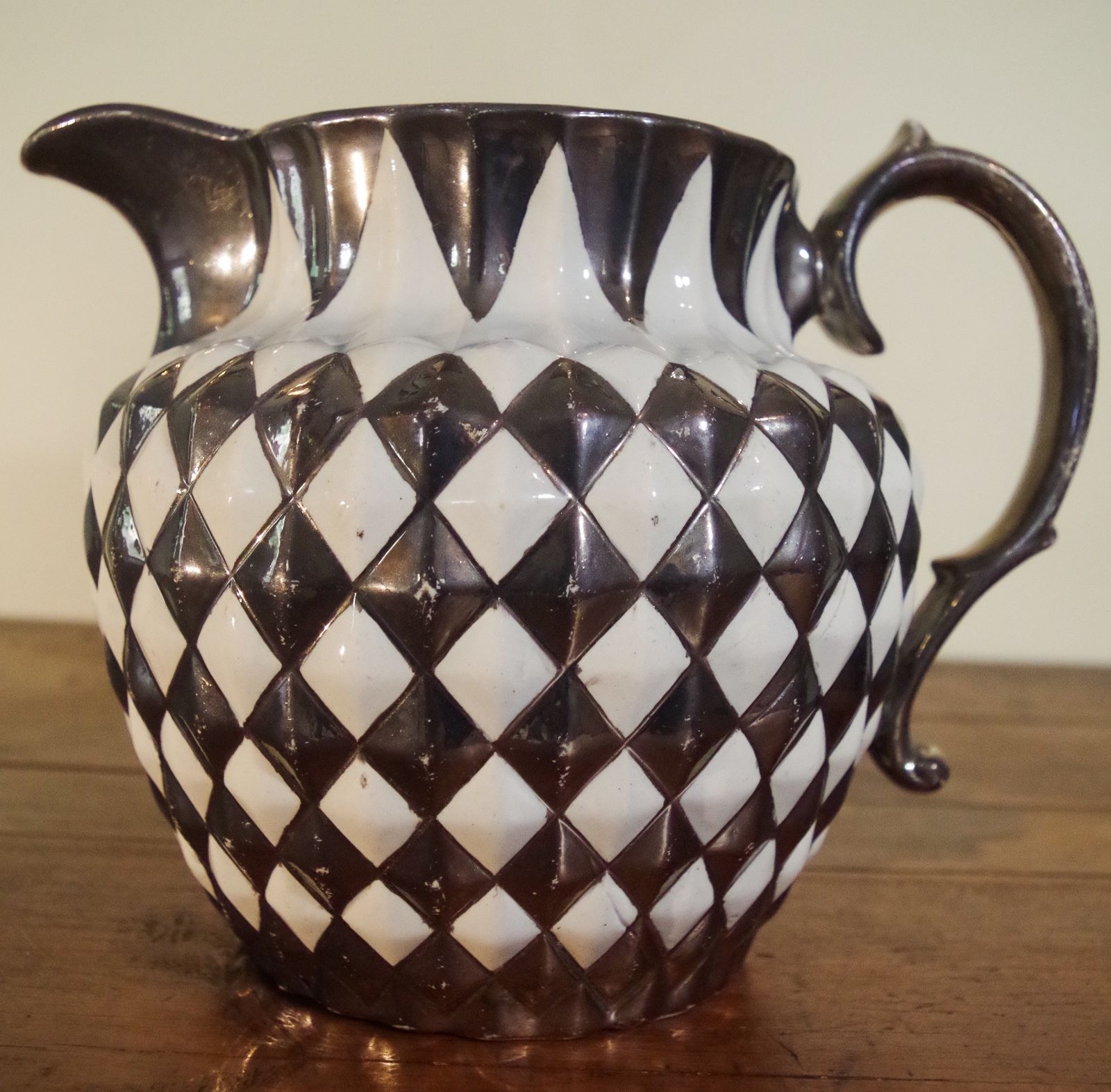 Title (ebay affiliate link): ANTIQUE HARLEQUIN PINEAPPLE JUG ~ SILVER RESIST LUSTRE PITCHER ~ STAFFORDSHIRE