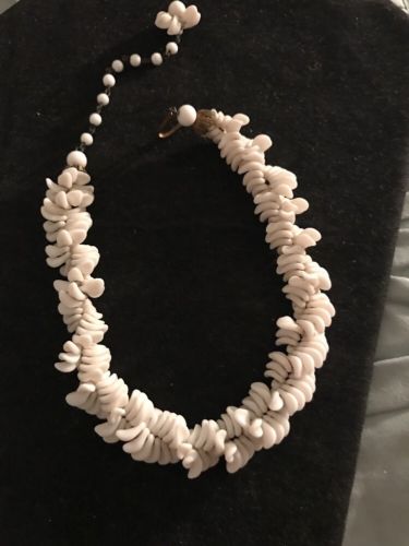 Title (ebay affiliate link): Vintage White Milk Glass Bead Choker Necklace 17" Adjustable Fish Hook Closure