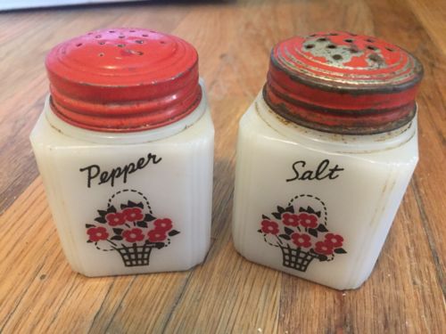 Title (ebay affiliate link): Antique/vintage Salt And Pepper Shakers, milk glass w/ painted floral