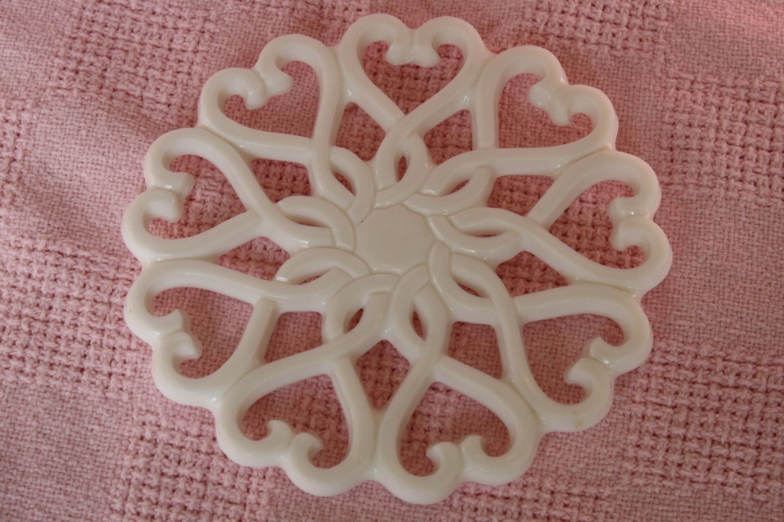 Rare Vintage Milk Glass Trivet Heart Pattern