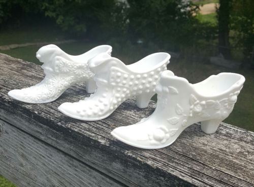 Title (ebay affiliate link): Fenton Milk Glass Shoes, Daisy & Button, Hobnail and Fenton Rose patterns