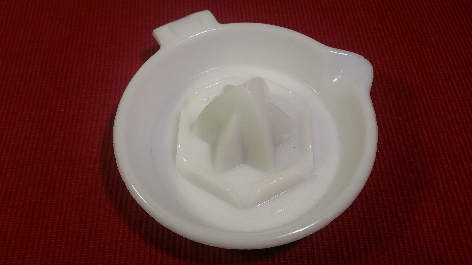 Title (ebay affiliate link): Vintage Hazel Atlas White Milk Glass Juicer Reamer with Tab Handle & Spout