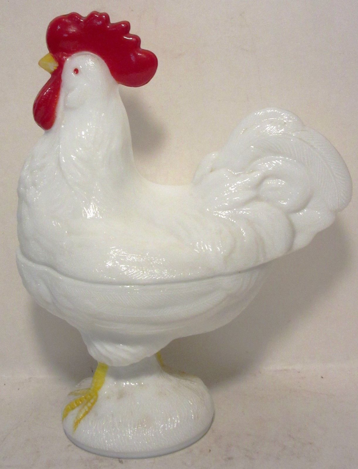 MILK GLASS STANDING ROOSTER ~ CANDY DISH ~ 8 3/4" HIGH