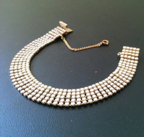 Title (ebay affiliate link): Vintage Signed LES BERNARD Milk Glass White Multirow Gold Tone Bracelet A150