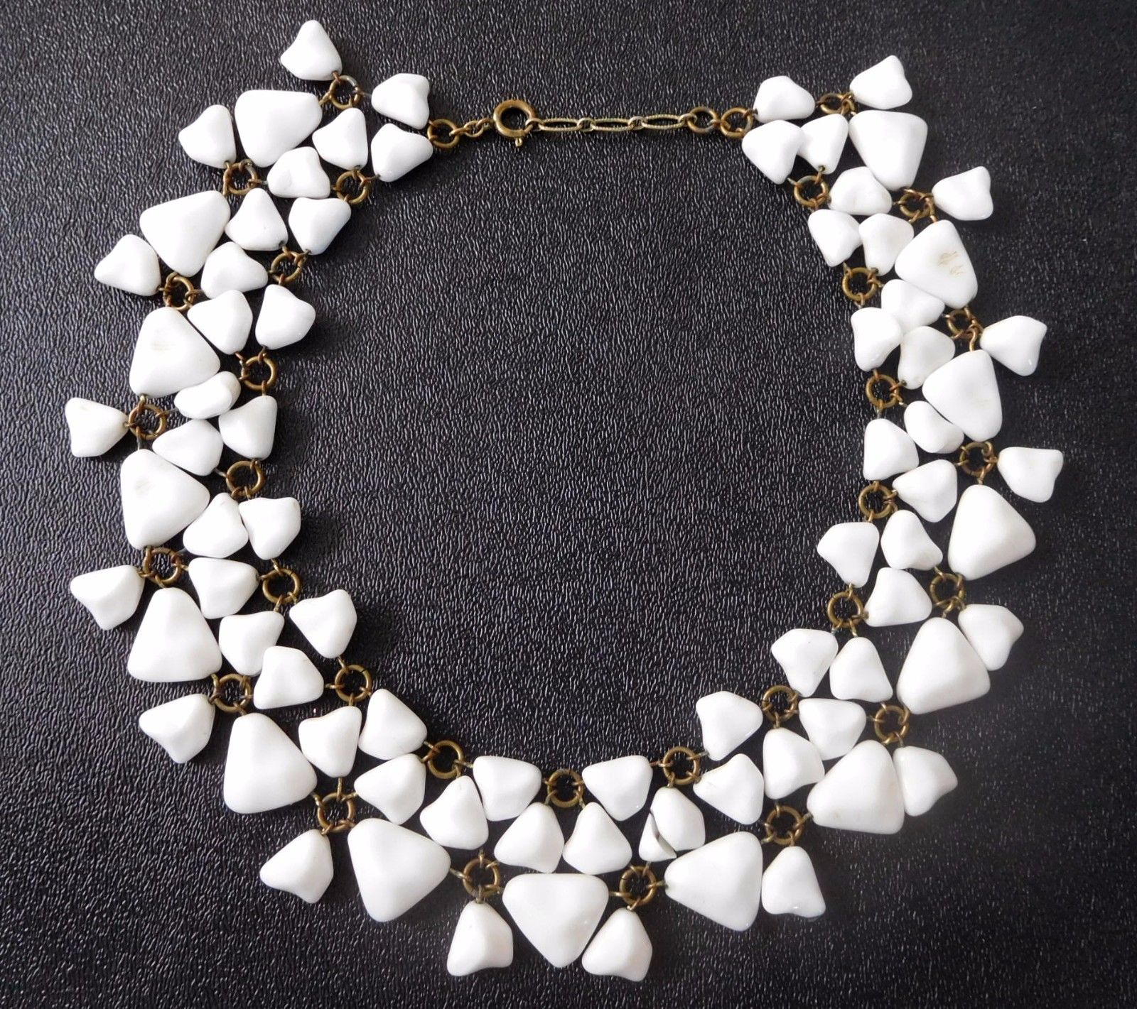 Title (ebay affiliate link): EARLIEST MIRIAM HASKELL VINTAGE MILK GLASS BIB NECKLACE CHOKER #112A