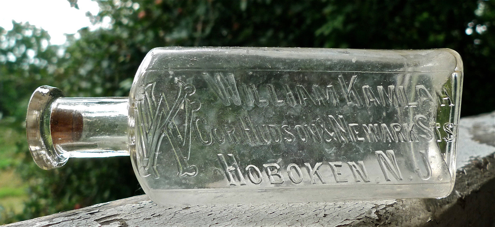 William Kamlah Hoboken NJ embossed druggist apothecary pharmacy vintage bottle