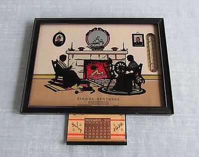 VINTAGE 1939 CALENDAR REVERSE PAINTED SILHOUETTE ADVERTISING THERMOMETER