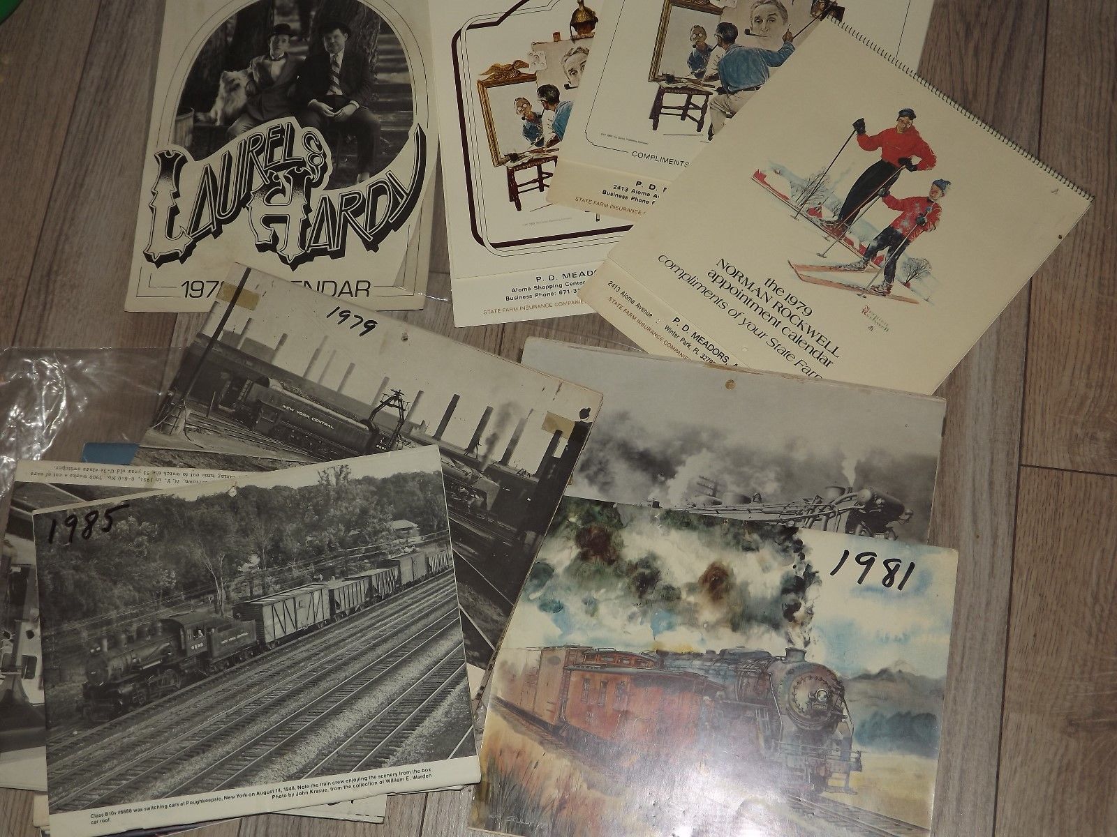 VINTAGE CALENDAR LOT NY CENTRAL SYSTEM TRAINS N. ROCKWELL LAUREL & HARDY 70-80S