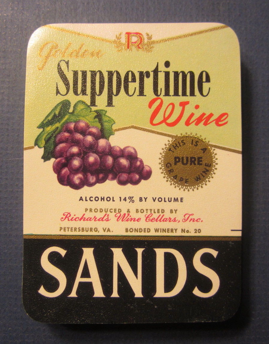 Title (ebay affiliate link): Wholesale Lot of 100 Old 1940''s Sands SUPPERTIME - WINE LABELS - Petersburg VA.