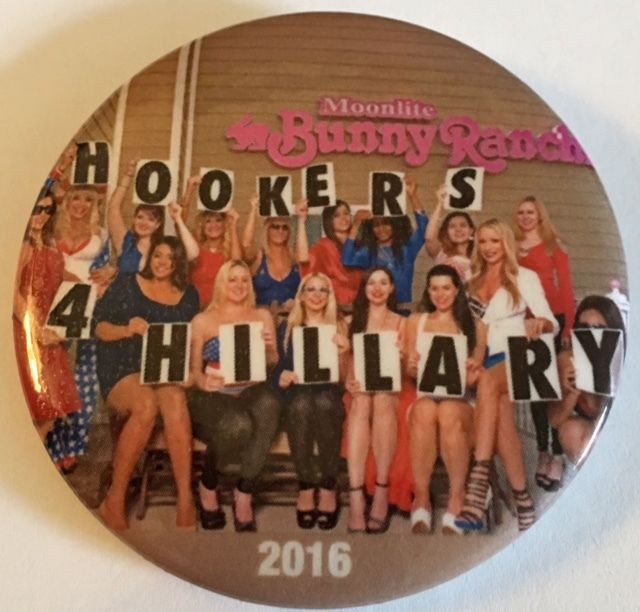 Title (ebay affiliate link): 2 1/4" The Bunny Ranch Hookers for Hillary 2016 Political Pinback Button