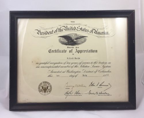 Title (ebay affiliate link): Framed Certificate Of Appreciation From US President John F. Kennedy 1963