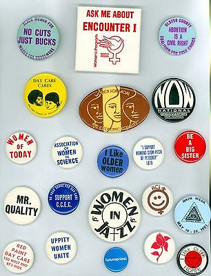 21 Vintage 1970s-80s Women''s Rights Liberation Pinback Buttons - Support CCEC