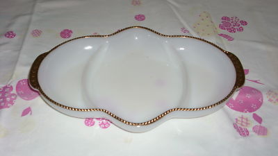 Vintage FireKing White Milk Glass 3 part dish w/ gold