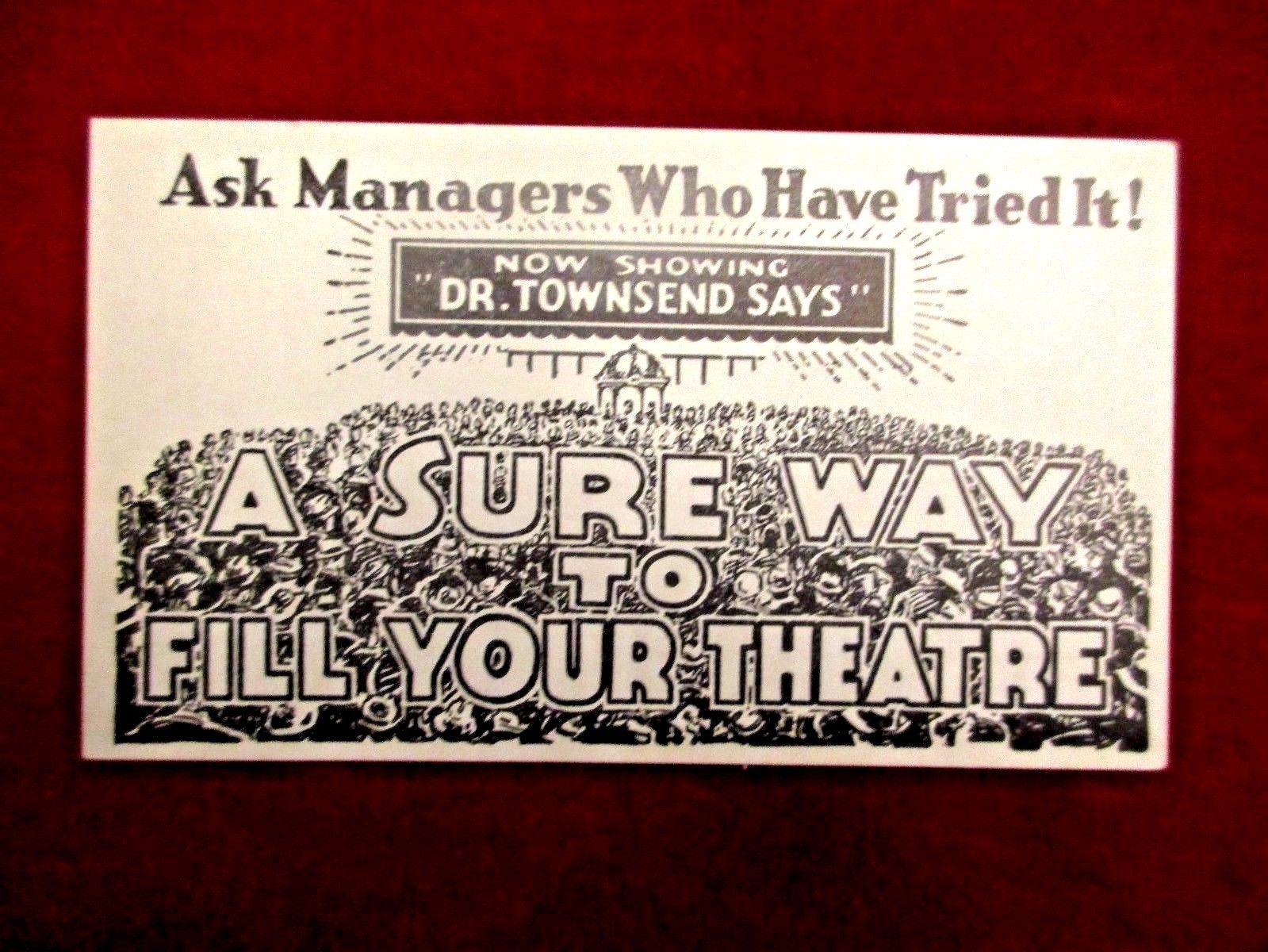 RARE FRANCIS TOWNSEND 1936 PRESIDENTIAL CAMPAIGN UNION PARTY POSTCARD MOVIE PROM