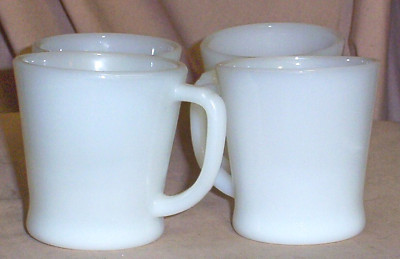4 Vintage Anchor Hocking Fire King Milk Glass "D" Mugs