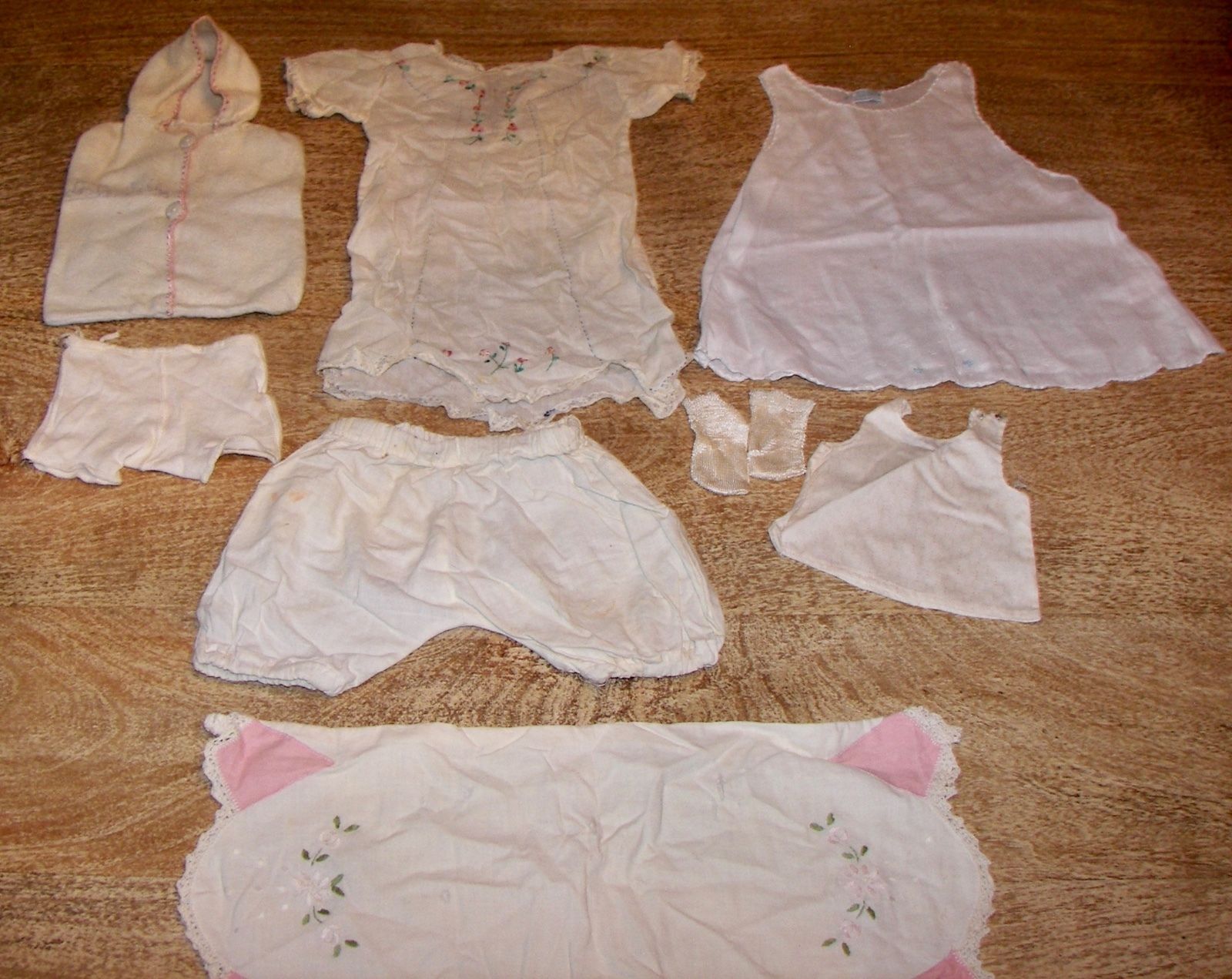 Antique bisque/composition Doll or Baby Clothes Lot Dress Bloomers Panty Socks
