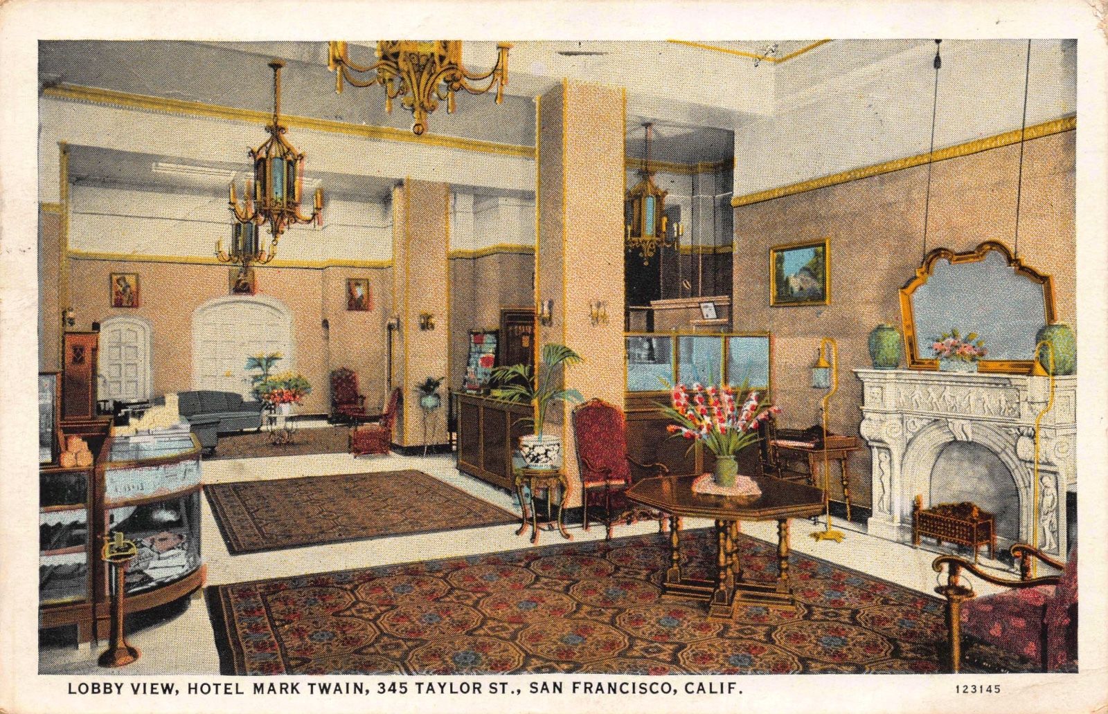 Title (ebay affiliate link): Postcard Lobby at Hotel Mark Twain in San Francisco, California~113488