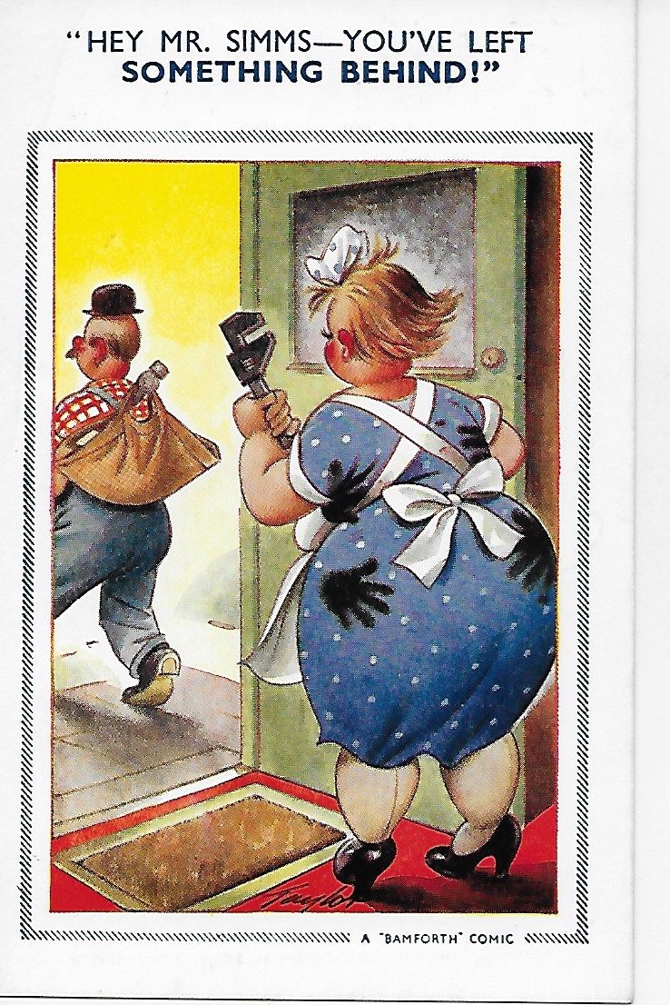 Title (ebay affiliate link): Bamforth Comic 1113 Hey Mr. Simms you''ve left something behind