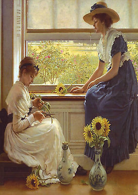 Title (ebay affiliate link): ART~ George Leslie GIRLs LADY Sunflower Porcelain Vase Window KIDS postcard
