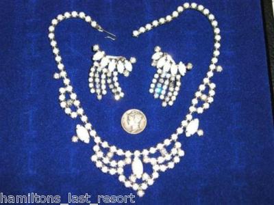 VINTAGE ARTDECO MILKGLASS RHINESTONE NECKLACE EARRINGS