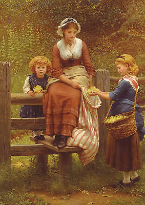 ART~ George Leslie GIRLs collect Cowslips Primrose Dress KIDS Modern postcard