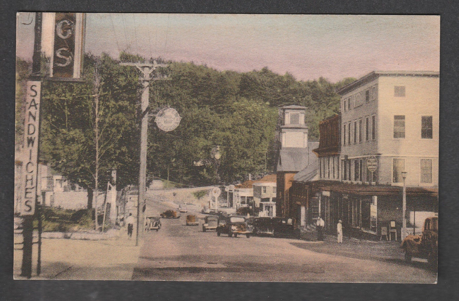 POST CARD PETERBOROUGH NEW HAMPSHIRE MAIN STREET 1941 COLORIZED PHOTO
