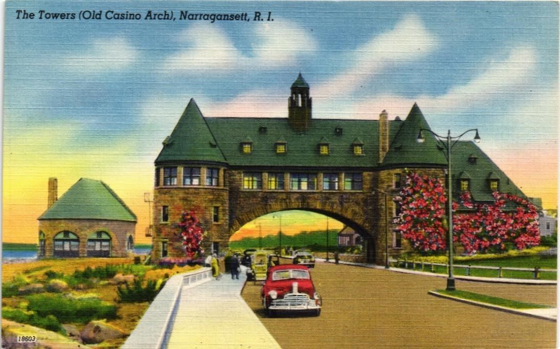 Title (ebay affiliate link): DR JIM STAMPS US TOWERS NARRAGANSETT RHODE ISLAND LINEN COLOURPICTURE POSTCARD