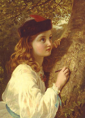 Title (ebay affiliate link): ART~ Sophie Anderson LITTLE GIRL HAT Red feather Memory TREE MODERN postcard