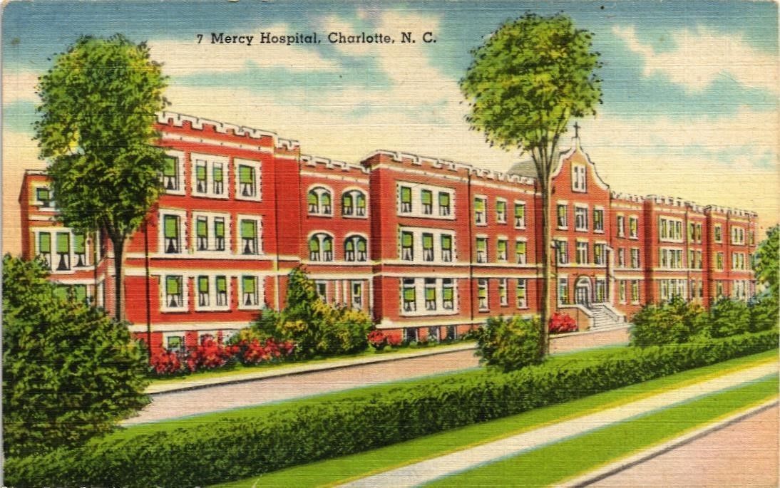 Title (ebay affiliate link): DR JIM STAMPS US 7 MERCY HOSPITAL CHARLOTTE NORTH CAROLINA LINEN POSTCARD