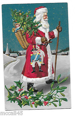 Title (ebay affiliate link): 1908 Santa Claus Postcard - Delivering Gifts on foot -- Embossed - Norway - NICE