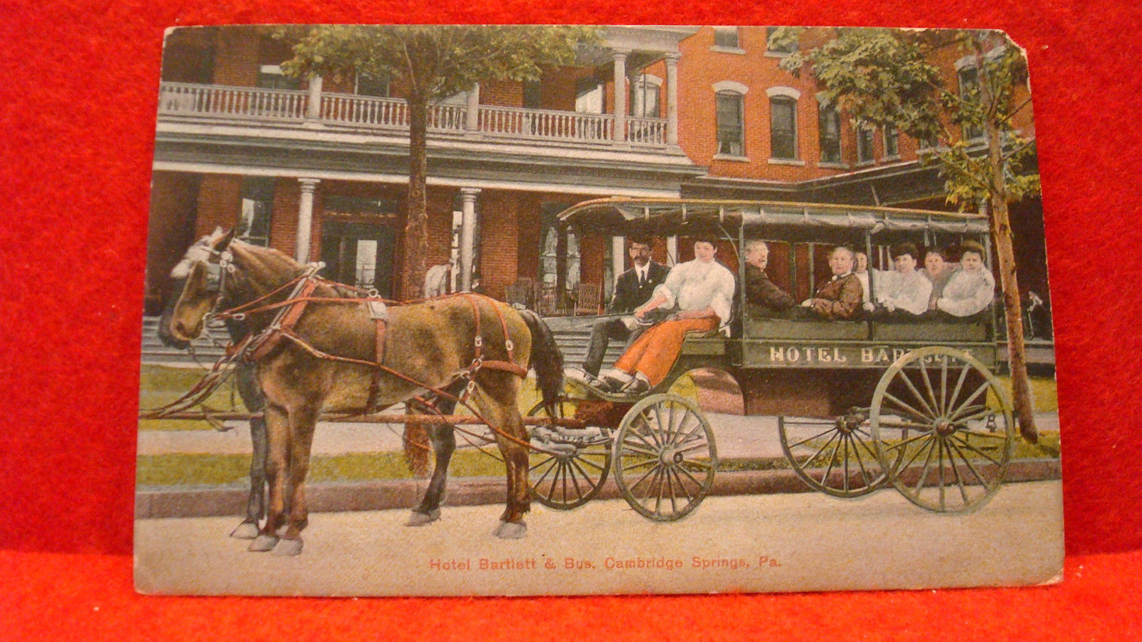 CAMBRIDGE SPRINGS, PA. "HOTEL BARTLETT & BUS" HORSE DRAWN OPEN SIDED BUS ~ WAGON