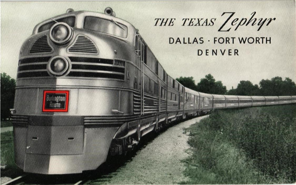 DR JIM STAMPS US TEXAS ZEPHYR TRAIN BURLINGTON RAILROAD POSTCARD