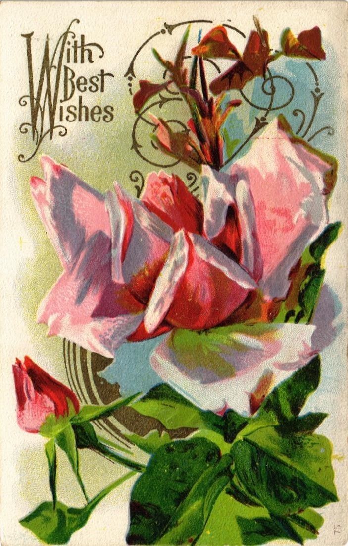 Title (ebay affiliate link): DR JIM STAMPS US PINK ROSES BEST WISHES EMBOSSED POSTCARD 1916