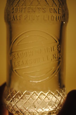 Meadow Dairies Milk Bottle Leaksville NC Tall Half Pint