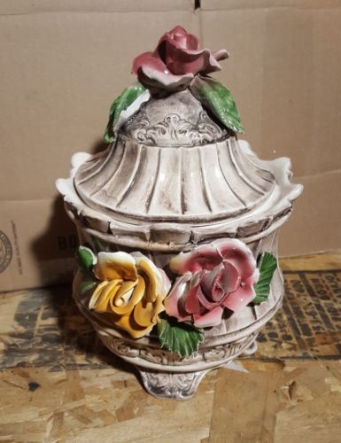 Title (ebay affiliate link): Capodimonte Porcelain Pink Rose Covered Centerpiece Cookie Biscuit Jar Italy