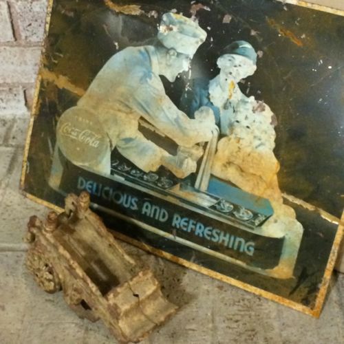 Title (ebay affiliate link): Old Antique Or Vintage Tin Coca-Cola Sign & Small Cast Iron Wagon