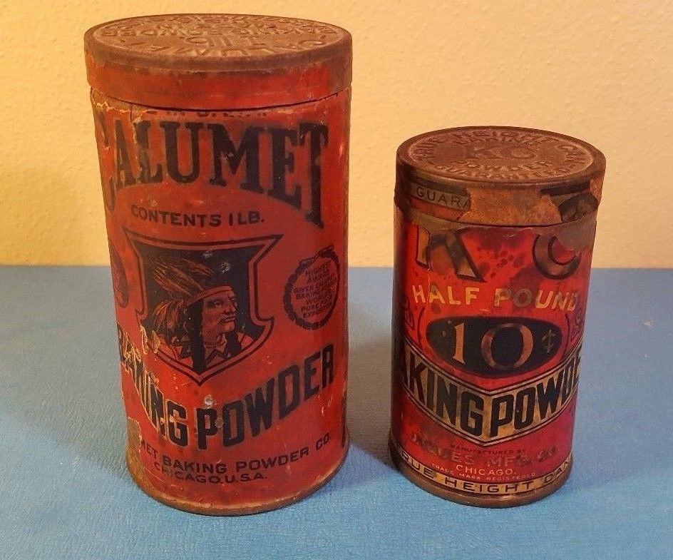 Title (ebay affiliate link): 2 Vintage Antique Tins - KC Baking Powder Tin 8 oz and Calumet 16 oz
