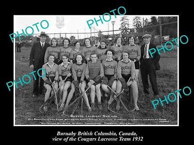 OLD LARGE HISTORIC PHOTO OF BURNABY BC CANADA, THE COUGARS LACROSSE TEAM c1932
