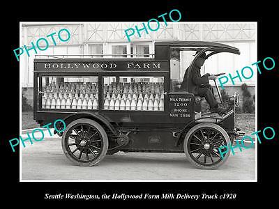 OLD HISTORIC PHOTO OF SEATTLE WASHINGTON, THE HOLLYWOOD FARM MILK TRUCK c1920
