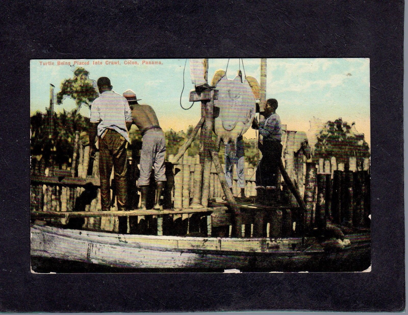 Title (ebay affiliate link): Turtle being placed into crawl Colon ethnic Panama postcard