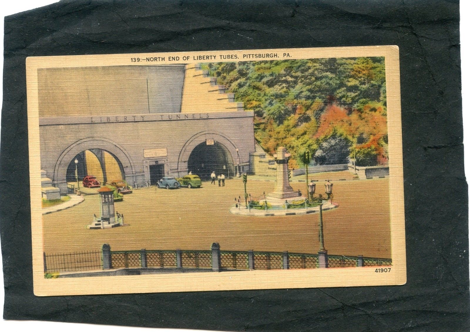 Pittsburgh PA, vintage 1940''s linen postcard, North end of Liberty Tubes, cars