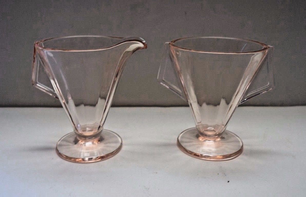 Vintage Pink Depression Glass Creamer and Sugar set ****SCREAMING ART DECO*****