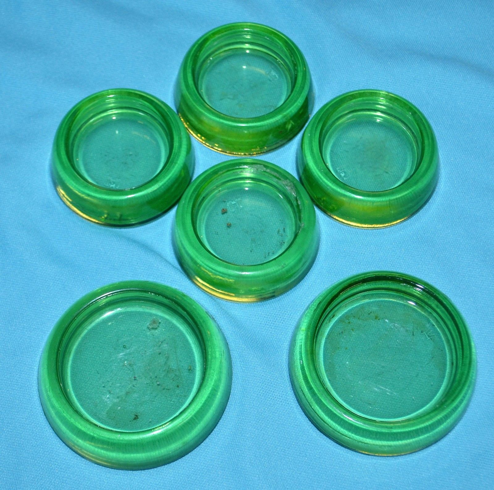 6 Anchor Hocking VTG Green Vaseline Uranium depression glass furniture coasters