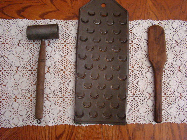 ANTIQUE PRIMITIVE EARLY OLD FARM KITCHEN WOOD & METAL UTENSIL LOT