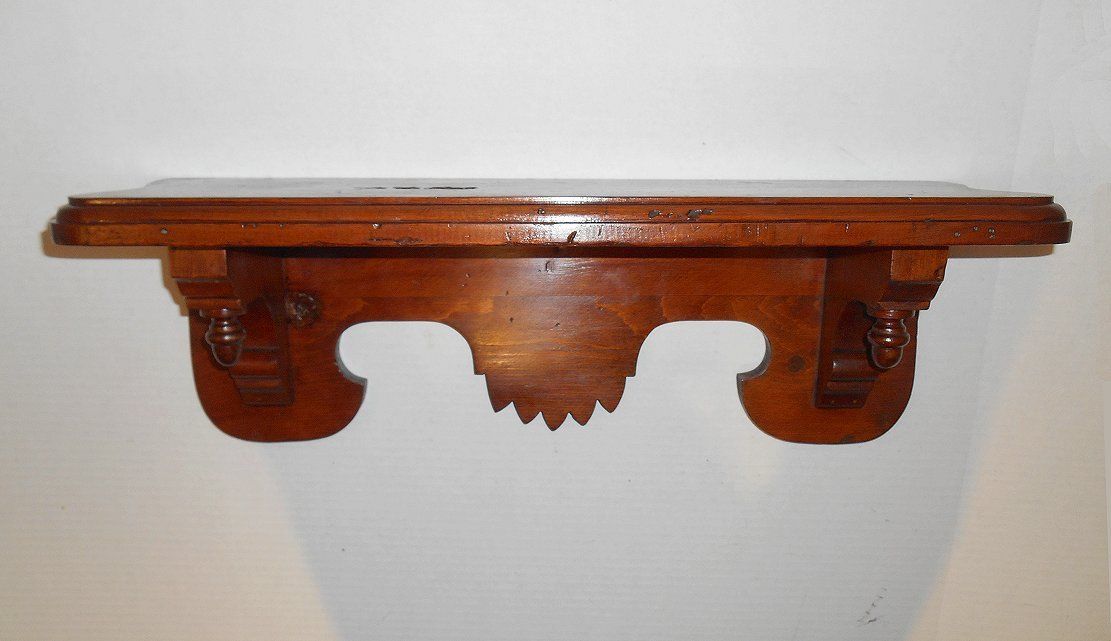 Title (ebay affiliate link): Antique Hand Carved Wood Primitive Clock Shelf Walnut Tone Saw Tooth Acorn Drops
