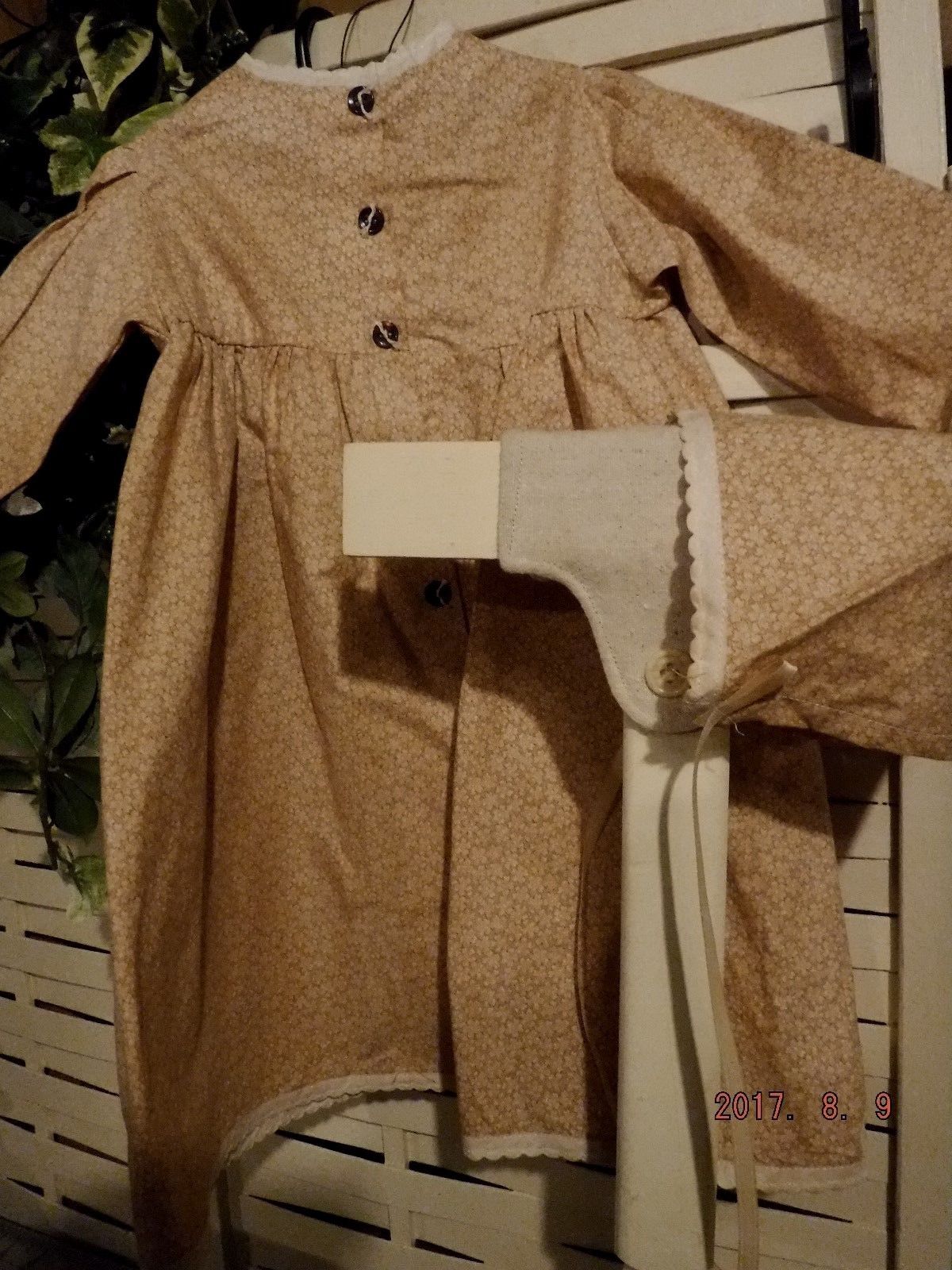 Title (ebay affiliate link): Primitive pioneer old time little sister dress and cap light gold tea stained