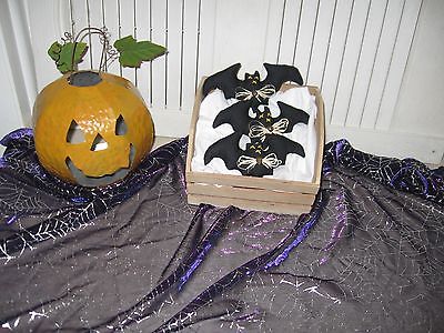 Handmade Primitive Fabric Bowl Fillers Halloween "Black Bats" Set of 3