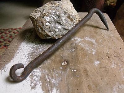 Large Primitive Antique Blacksmith Forged Iron Barn Hook Door Hook Cabinet Hook