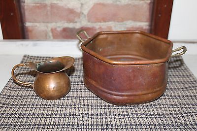 *PRiMiTivE*Set of 2 Handmade Copper Pieces*Medium Bowl &Small Pitcher*Vintage*